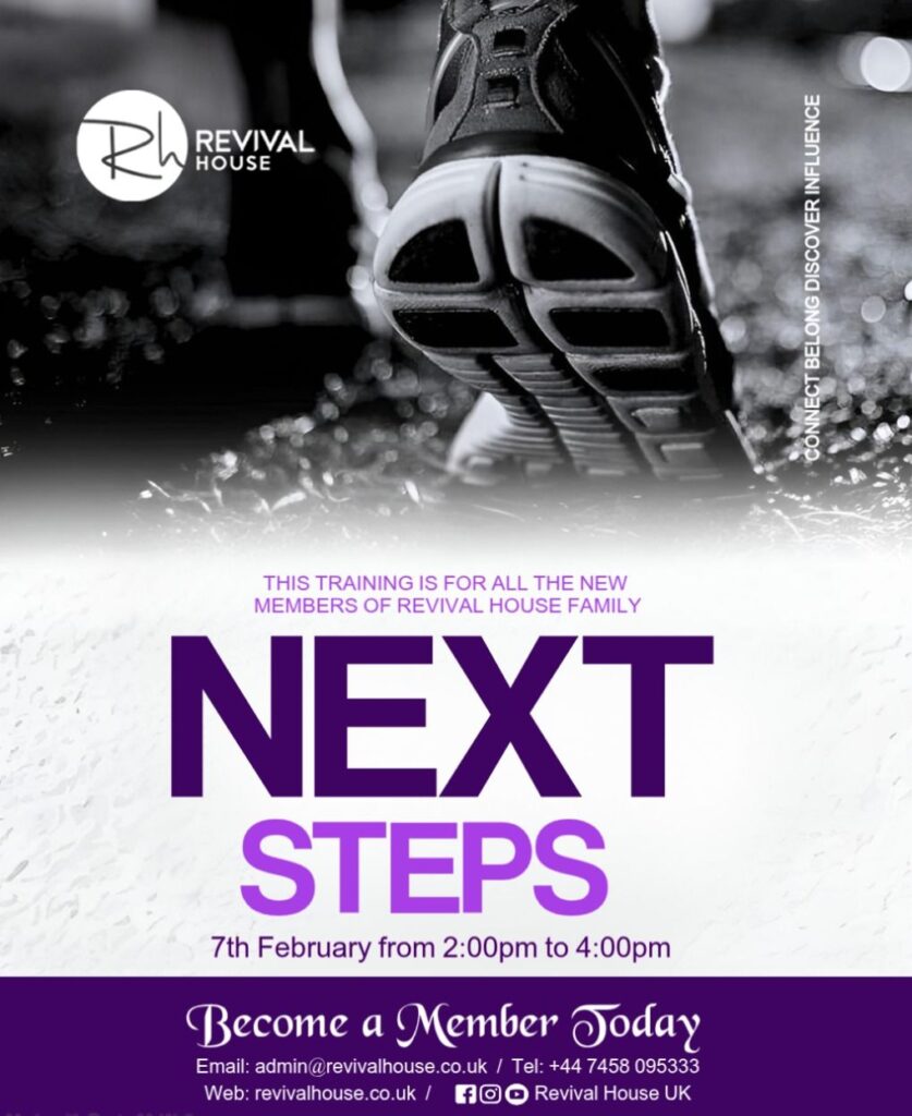 NEXT STEPS TRAINING – THIS FEBRUARY Next Steps is a membership training for all members of the Revival House Church family who are new to